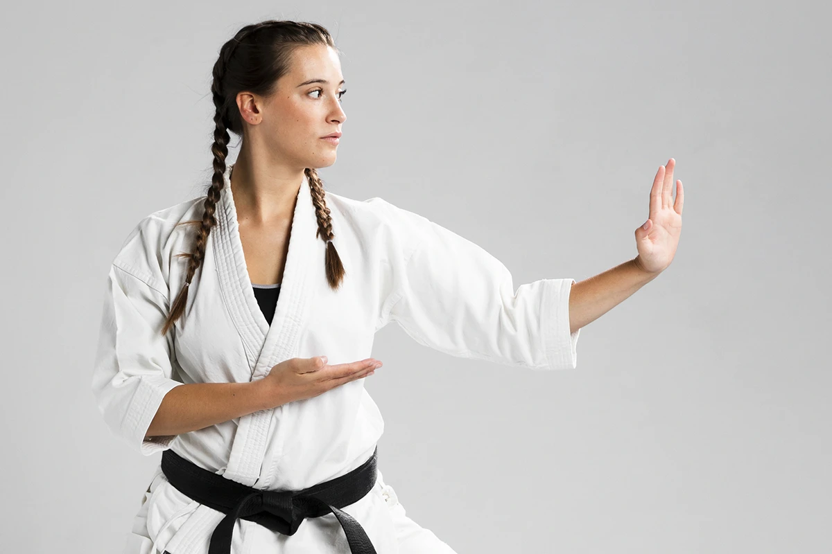 Karate ist eine japanische Kampfkunst, die sich vor allem durch Schlag-, Stoß-, Tritt- und Blocktechniken sowie Fußfegetechniken als Kern des Trainings auszeichnet. Es bedeutet „leere Hand“, was darauf hinweist, dass keine Waffen verwendet werden.